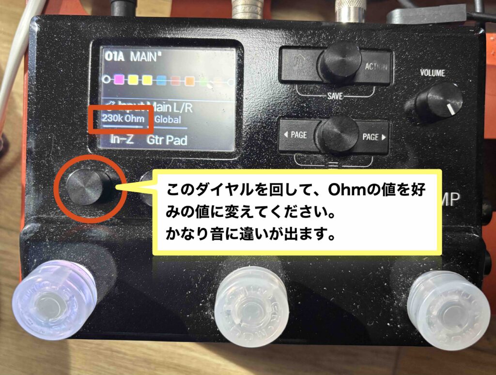 HELIXシリーズのマルチエフェクターはインプットの抵抗値(インピーダンス)をお使いのギターに合わせて変更することができます。